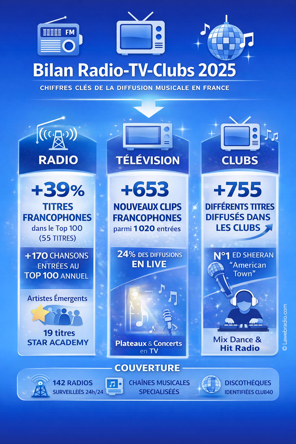 Le Bilan Radio-TV-Clubs 2025 de Yacast confirme que la musique francophone occupe aujourd’hui une place plus forte que jamais dans le mix médiatique, tout en révélant les tendances de consommation et de programmation qui façonneront l’industrie musicale française et européenne dans les années à venir.