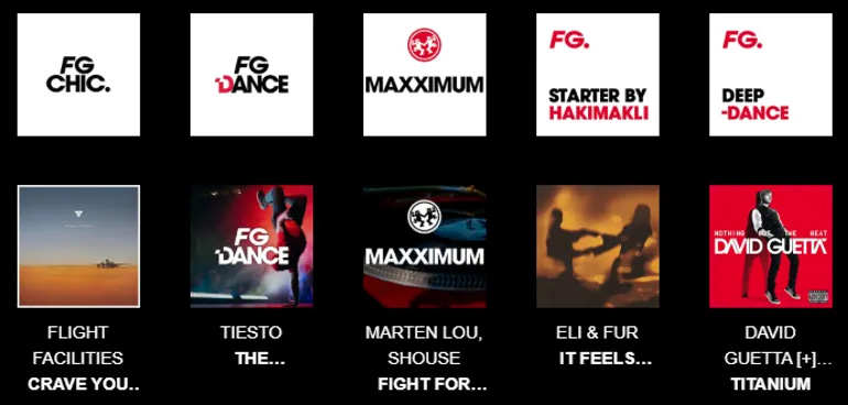 • Été 2025 : lancement de FG Sunset (ambiances estivales), FG Remix (house/disco/afro) et FG Afro-House.